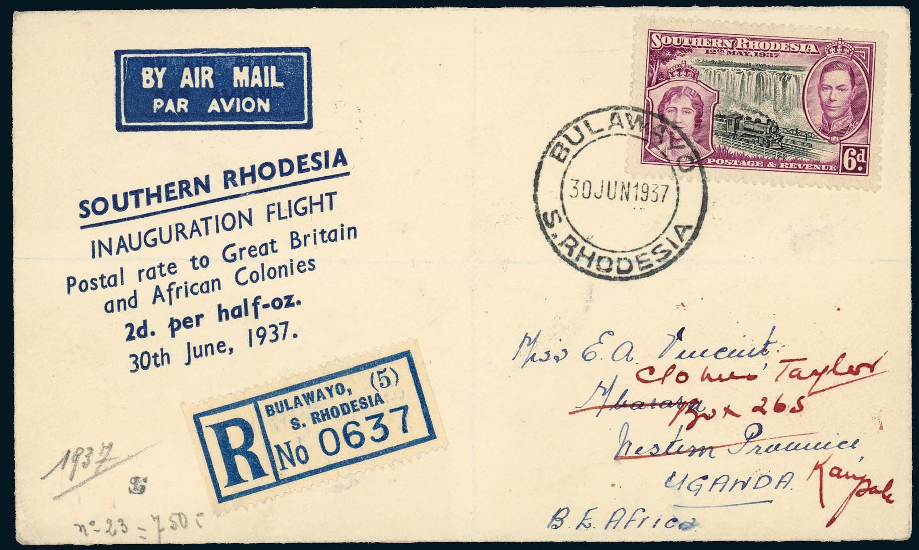 2402 | Poste Aérienne, Rhodésie du sud, 1er vol Bulawayo-Kampala (Ouganda) (Muller 23) 13/6/1937 TB | 15 | 30 | 15 | enchérir | |