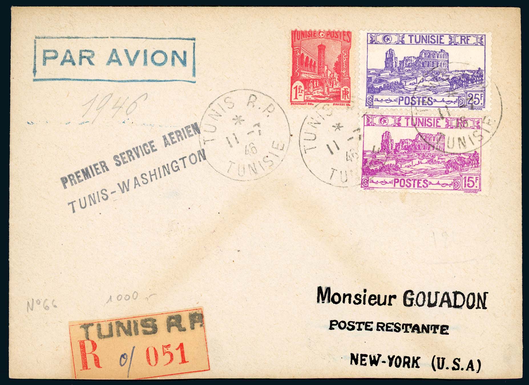 2405 | Poste Aérienne, Tunisie, 1er vol Tunis/Washington sur enveloppe recommandée 11/7/48 TB | 25 | 50 | 25 | enchérir | |