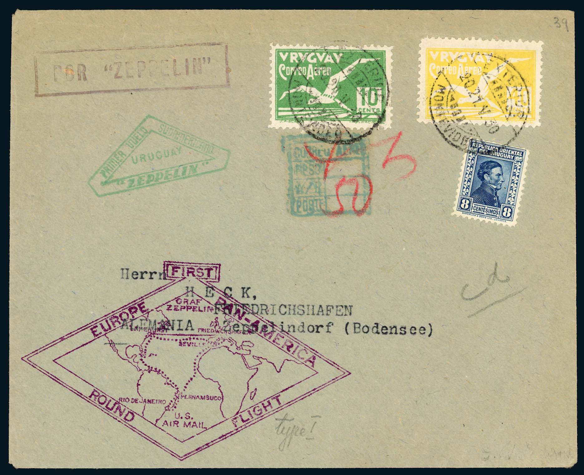 2406 | Urugyay, Zeppelin, Südamerikafarth, Lettre de Montevideo pour l'Allemagne 20 mai 1930 TB | 30 | 60 | 30 | enchérir | |