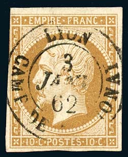 35 | N°3 OB C. LYON (type 14) du 22 janvier 1849 TB | 70 | 140 | 70 | enchérir | |