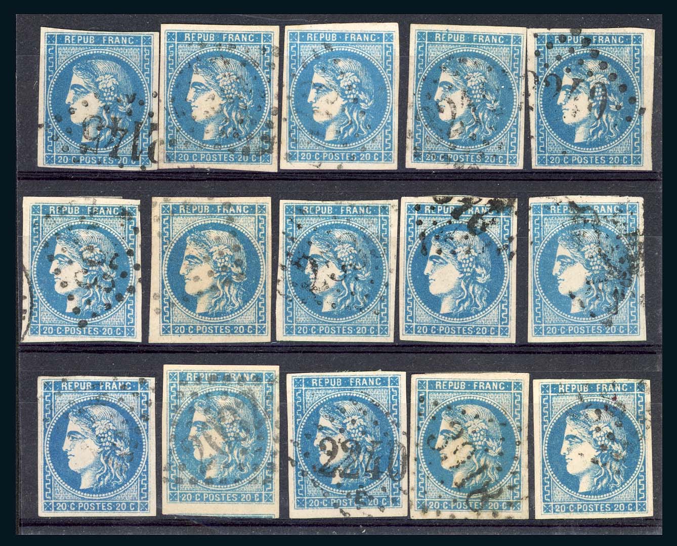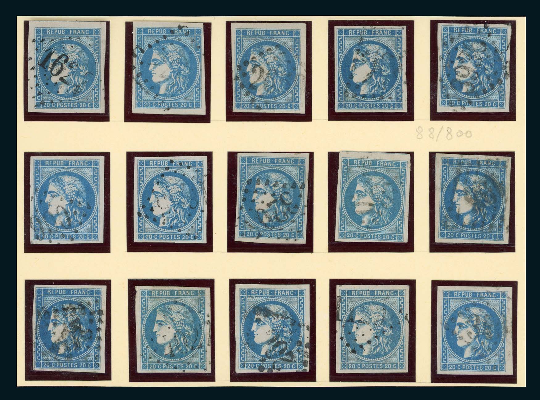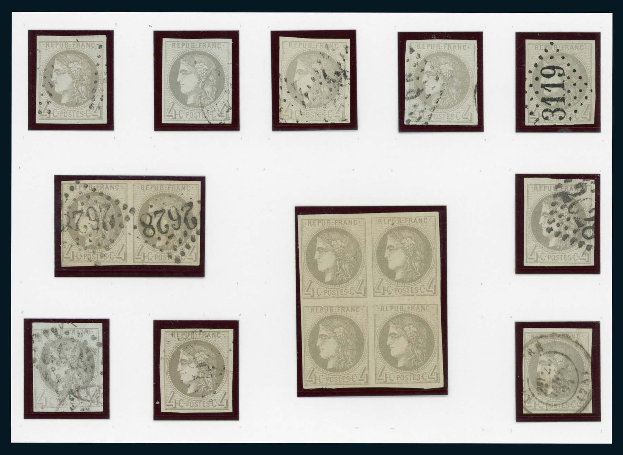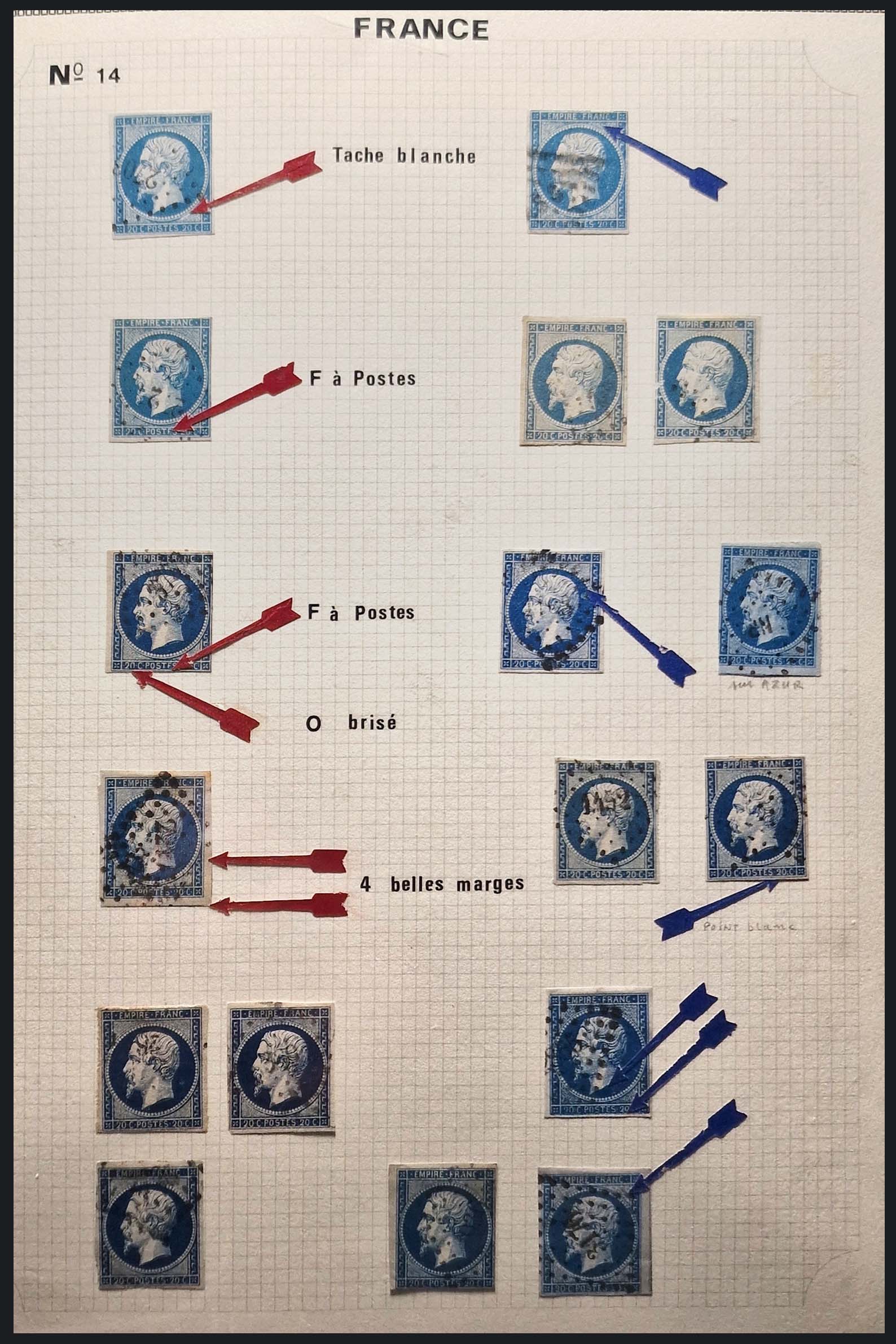 2419 | France, N°14, étude de nuances, variétés sur timbres détachés OB (environ 200 timbres), quelques beaux exemplaires avec grandes marges, paires et environ 70 lettres B/TB dans l'ensemble Vous pouvez trouver l'ensemble des photos sur la page de la vente |