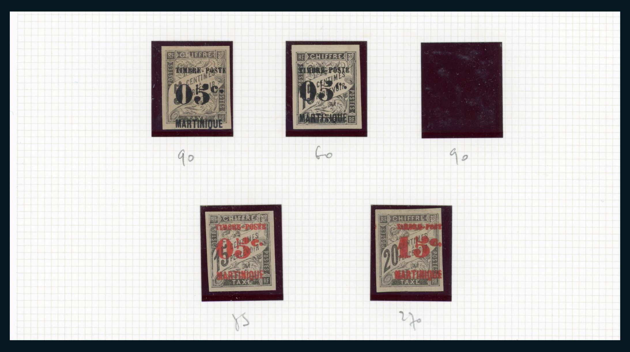 2477 | Colonies générales, petite étude de surchargés dans les colonies sur détachés neufs et OB, bonne qualité générale (c. indicative 1700), à étudier | 200 | 400 | 200 | enchérir | |