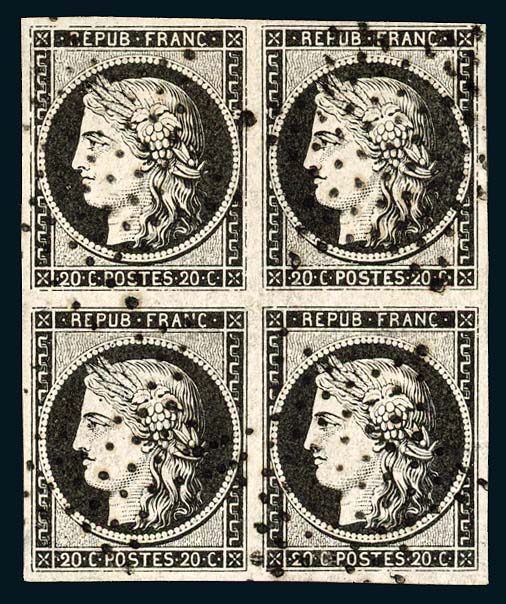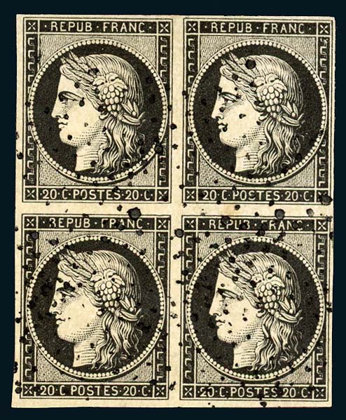 39 | N°3a, noir sur blanc, bloc de 4, OB étoile, signé TB | 600 | 1000 | 600 | enchérir | |
