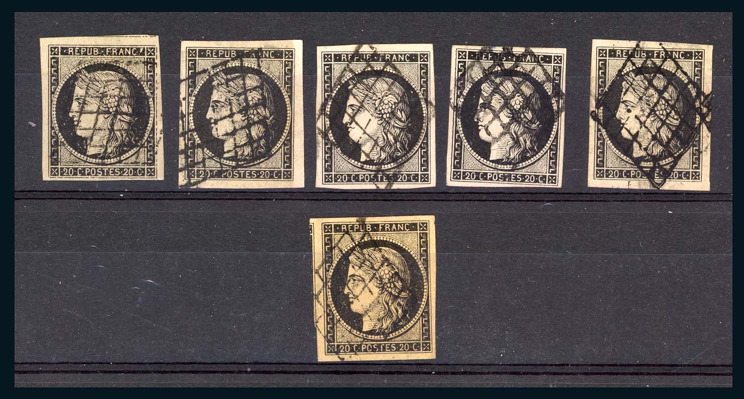 44 | N°3, Lot de 6 exemplaires OB grille choisis, belles marges TB | 100 | 200 | 100 | enchérir | |