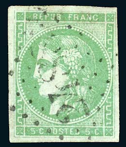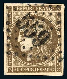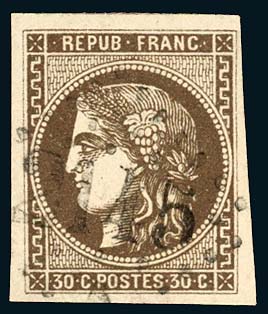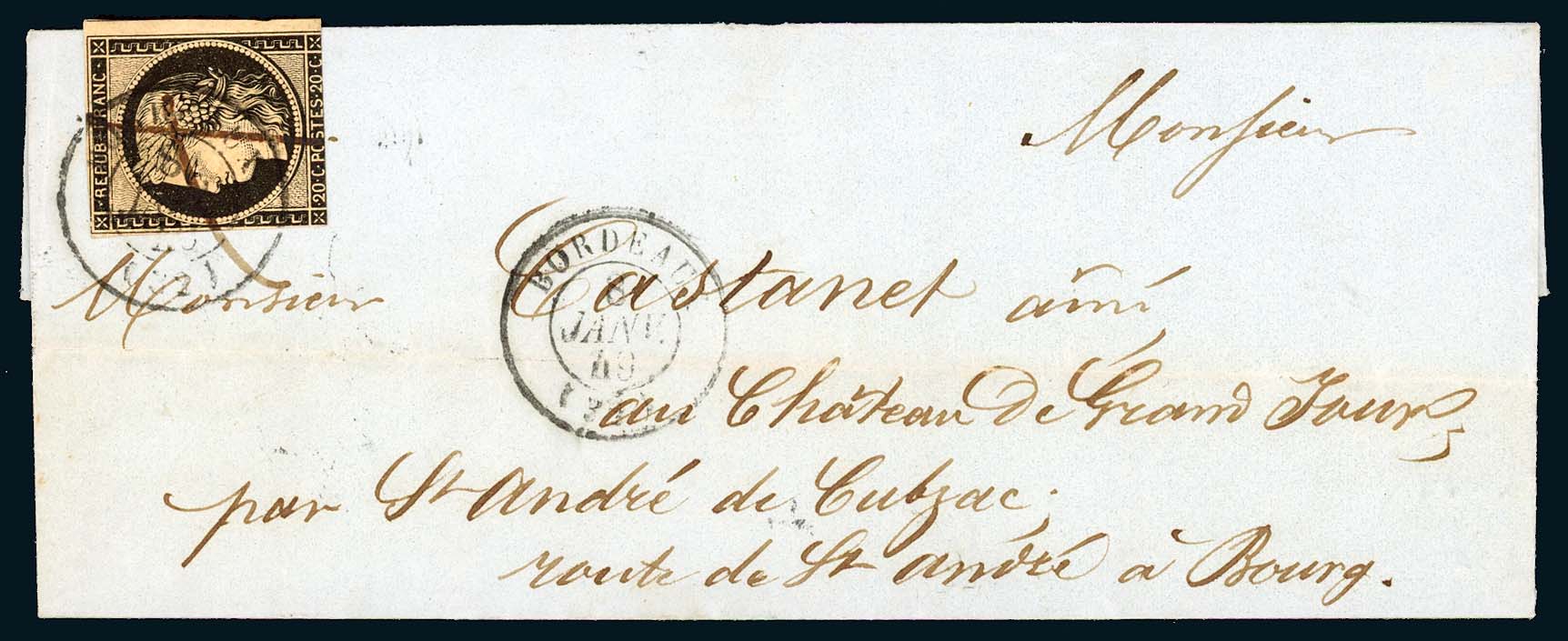 50 | N°3 (filets touchés) OB C. BORDEAUX du 8 janvier 1849 plus plume manuscrite Belle présentation | 200 | 400 | 200 | enchérir | |