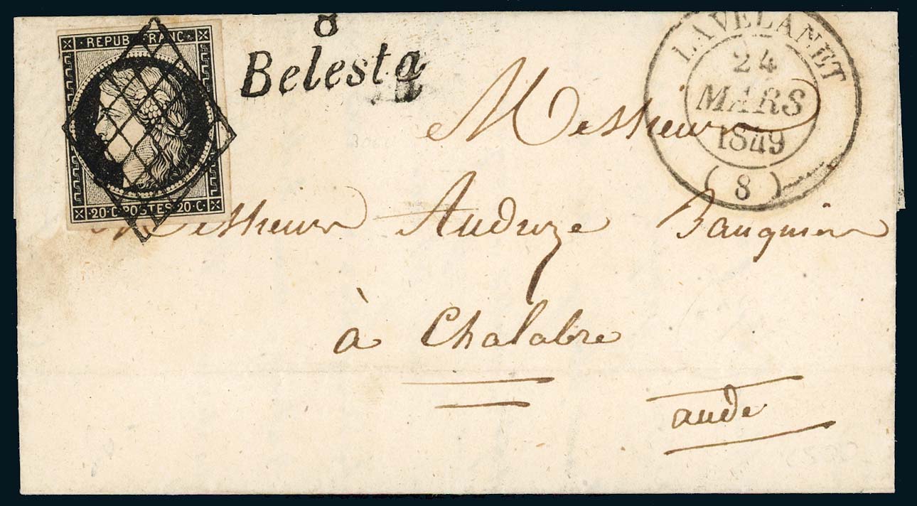 72 | N°3 (court) avec cursive 8/Belesta et C.14 LAVELANET sur lettre pour Chalabre 24 mars 1849 TB | 125 | 220 | 125 | enchérir | |