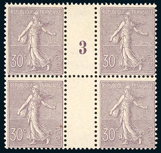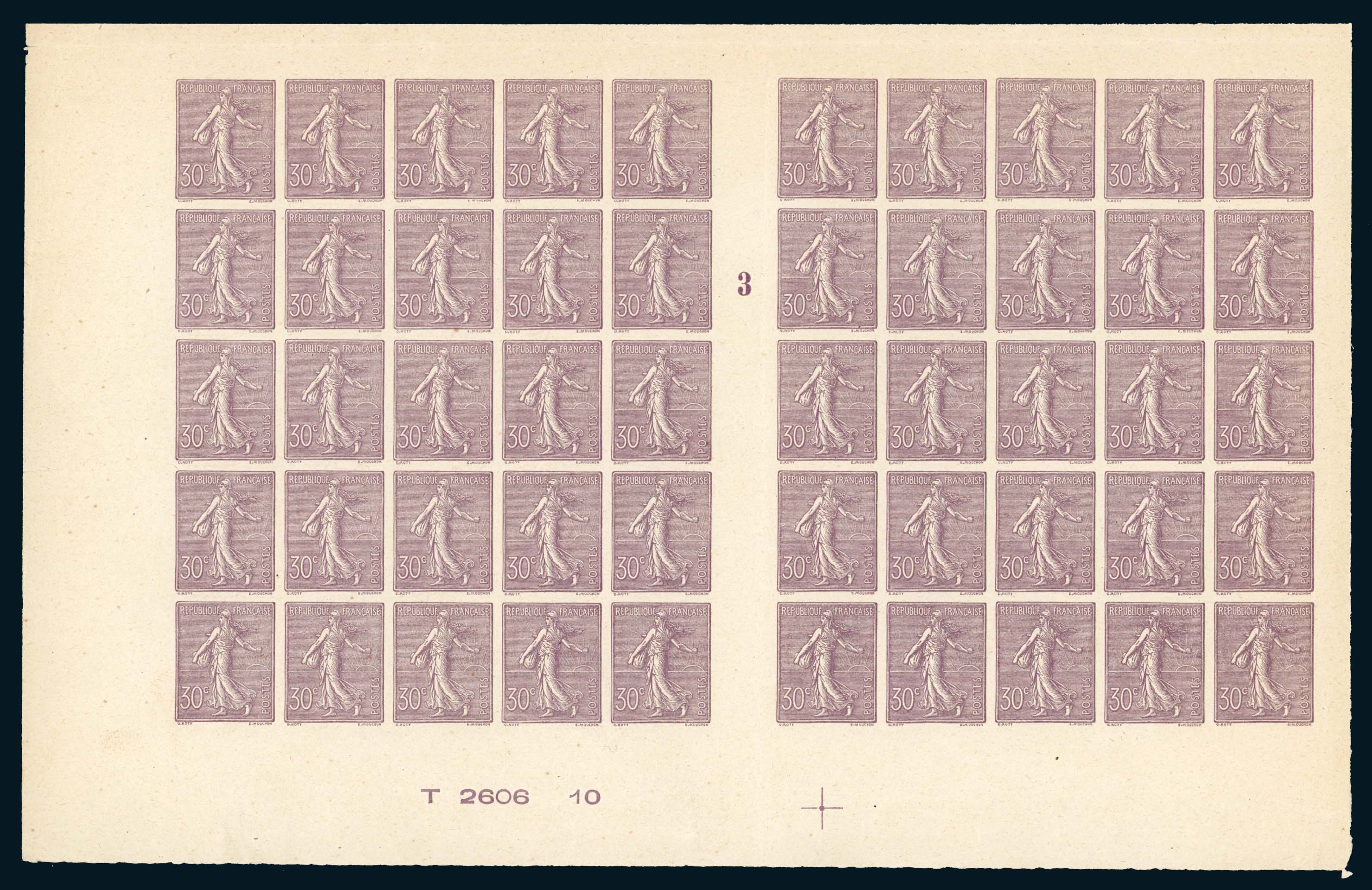 2425 | Semeuses, Lot de neufs dont N°129c, 137 (impression double), 138 (bloc de 4 interpanneau), 138f, 142b, 142c, 146 (double surcharge), 147a, 192 (variété d'impression), 194 (variété sans P tenant à normal et sans O tenant à normal), 197/205, 205a et 275/277 OB (+quelques divers), la plupart **, bel ensemble TB | 300 | 600 | 300 | enchérir | |